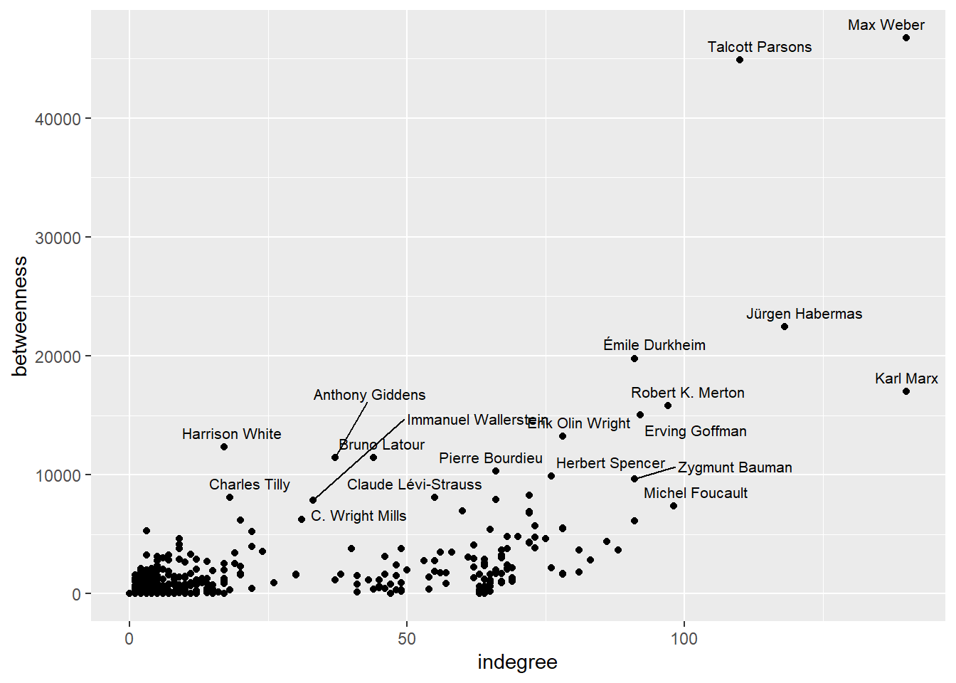 library(tidytext)Wikipedia example: relations among 950 pages about sociologists
